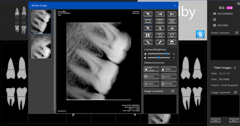 Wide dynamic range and high contrast resolution work together to make unparlleled clarity for both the tooth and subtle details.Multiple image psrtrocessing agorithms help to improve image contrast and sharpness with more exquisite details of the soft tises.