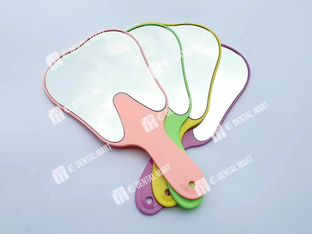 At E-Dental Mart, you can buy the handheld looking mirror. This comes with a large mirror face, a tooth shape, and a large handle.