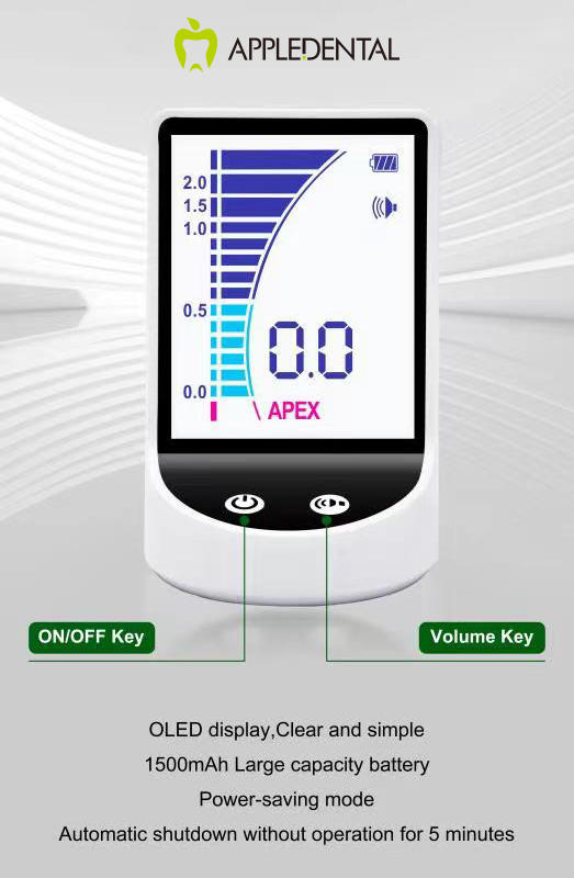 3.High capacity rechargeable battery with 3.7V/2000mAh.d) The File clip,Lip hook and Touch probe can be sterilized byautoclaved sterilizer.