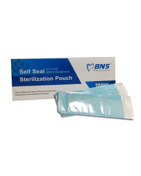 Self-sealing sterilization pouch has a pre-fold design which ensures a fast and accurate folding of the adhesive strip to form an airtight seal without the use of heat sealer. It is constructed of medical-grade surgical paper that is completely impenetrable to germs and bacteria. It is a completely airtight pouch where you can keep your tools safe and secure. In one box of self-sealing sterilization pouches you can have 200 pouches at most reasonable price. Buy this self-sealing sterilization pouch from our dental online store. It is the best self-sealing sterilization pouch for keeping tools clean and protected from cross-infection.